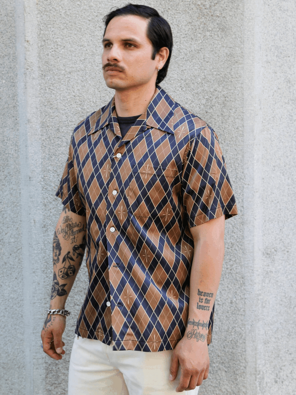 The open-collar design has a unique look and feel that combines a traditional Japanese pattern with a 50's design feel.
