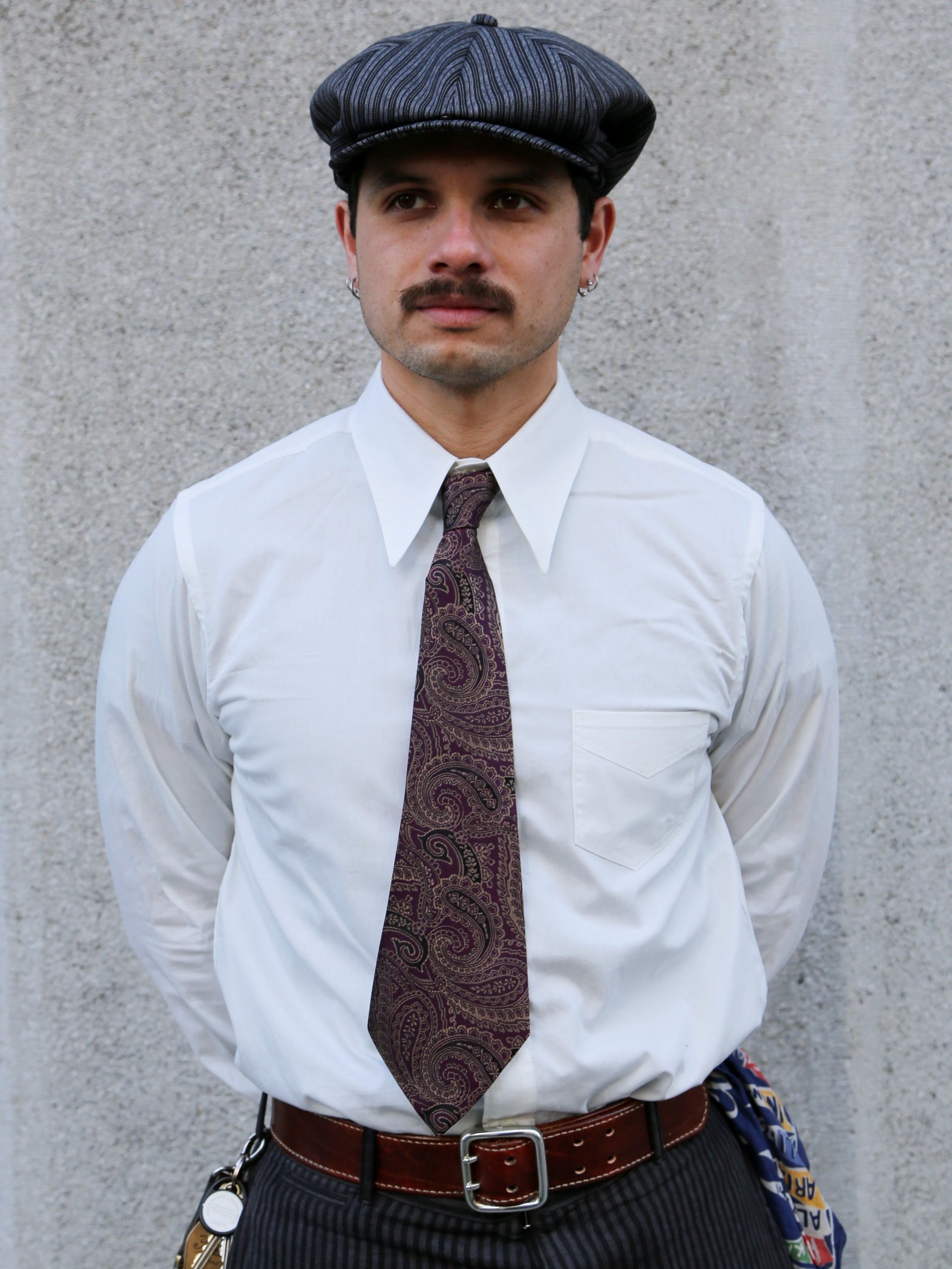This tie is a faithful reproduction of the short, wide necktie that was popular from the 1930s to the 1940s when prohibition was lifted.