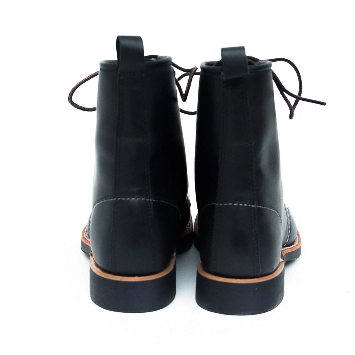 The Red Wing Shoes Silversmith 3361 Black Boundary is a Red Wing Shoes Women style from the Core Collection. The Core Collection features the most popular styles from our men's collection, redesigned with cow hide and a softer insole, resulting in a boot that is much more comfortable. The Silversmith 3361 reinterprets the Harvester boots from the Heritage collection which was popular in the harvest fields and mining industry. The Silversmith is a 8-inch lace-up boot with traditional speed hooks and is built on a Vibram 430 Lug sole with a Goodyear welt. The Silversmith 3361 showcases the Red Wing Black Boundary smooth finished premium leather from Red Wing Shoes' own S.B. Foot Tannery. The 3361 Silversmith comes with black-brown Taslan laces.