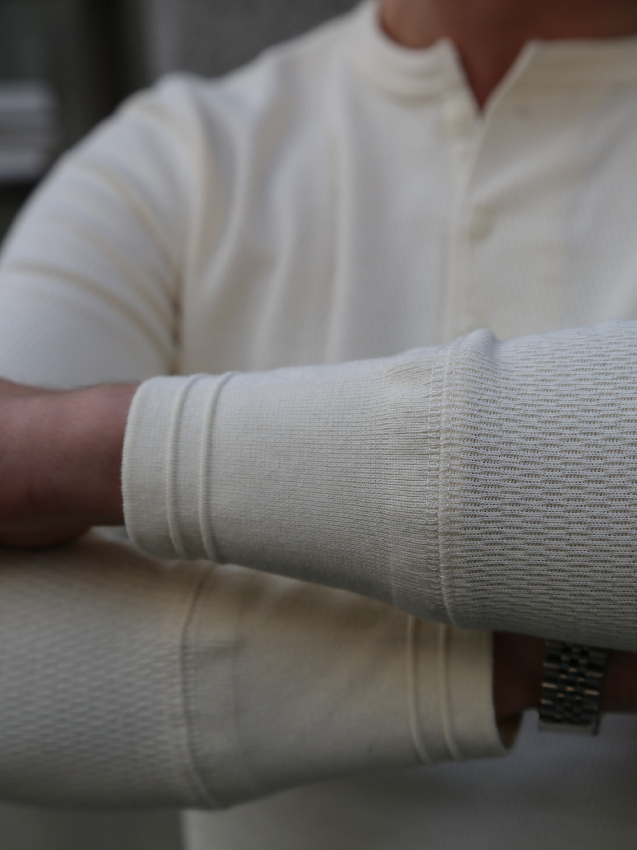 Gladhand Waffle Henley LS Teeshirt – White (GH-11)