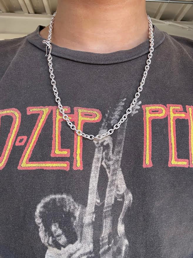 The 0-061 chain has a width of 5 mm, offering a strong and balanced look. While it cannot pass through the holes of First Arrow’s feather pendants, it pairs beautifully with larger designs such as the Eagle Claw or Bear Claw. The size and weight also allow for creative styling, such as threading a cherished ring for a personal touch.