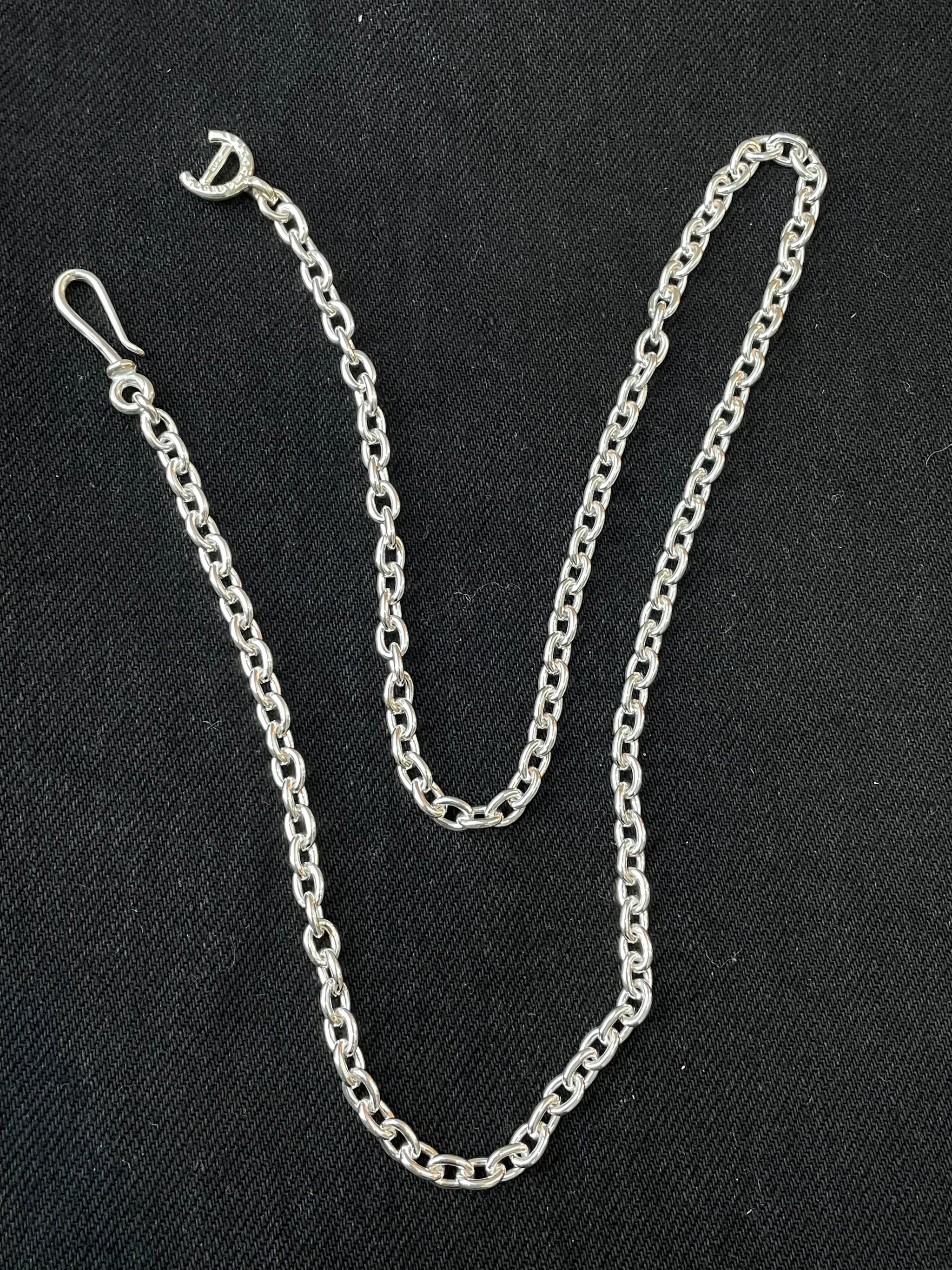 This substantial silver chain from First Arrow’s is designed as a versatile foundation piece, perfect for wearing on its own or paired with a pendant. Its bold thickness gives it presence when worn solo, while the clean design makes it an ideal match for larger motifs. A piece like this quickly becomes a staple in any collection, blending utility with timeless style.