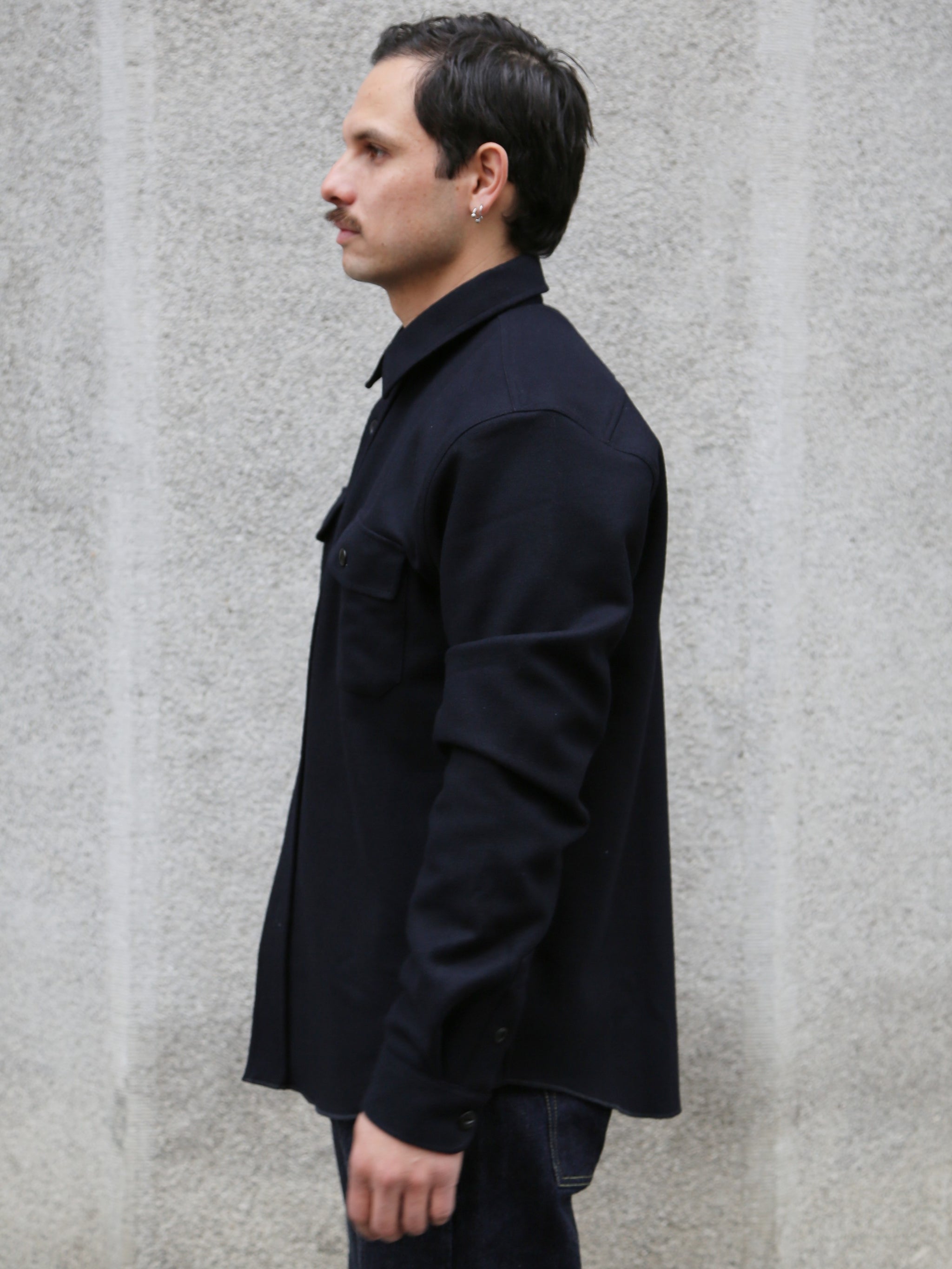 Indigofera Iconic shirt made from Melton wool in navy blue. The shirt is made from premium Melton wool, which is known for its softness, warmth and durability. The dense weave ensures optimum insulation, while the material remains breathable.