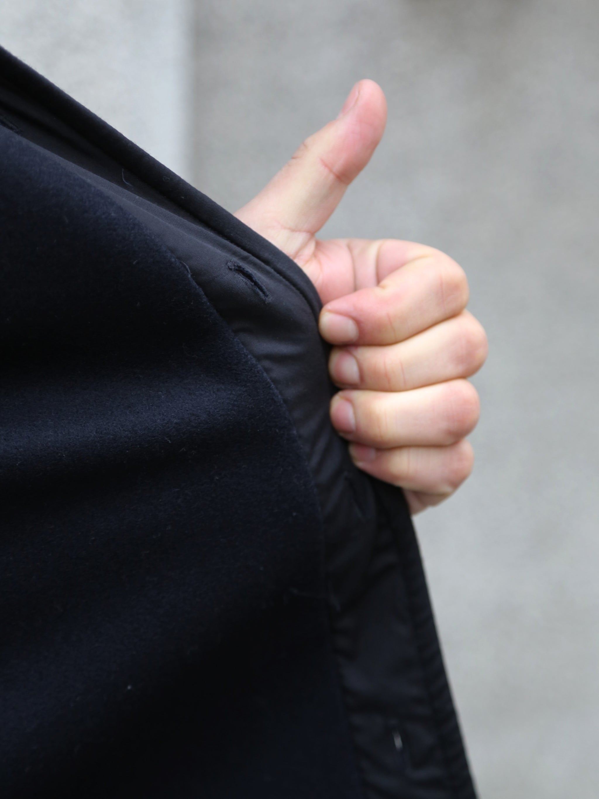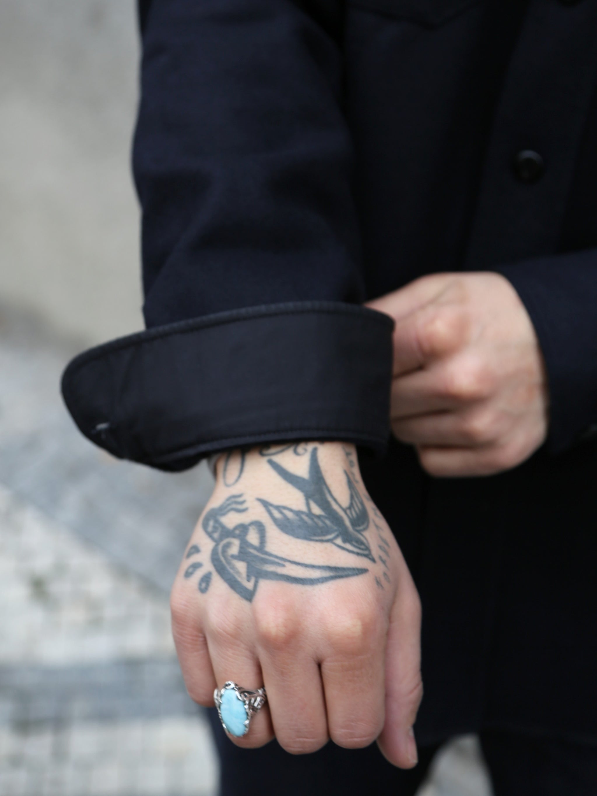 We also particularly like the beautiful metal buttons and the artfully embroidered insides of the cuffs.