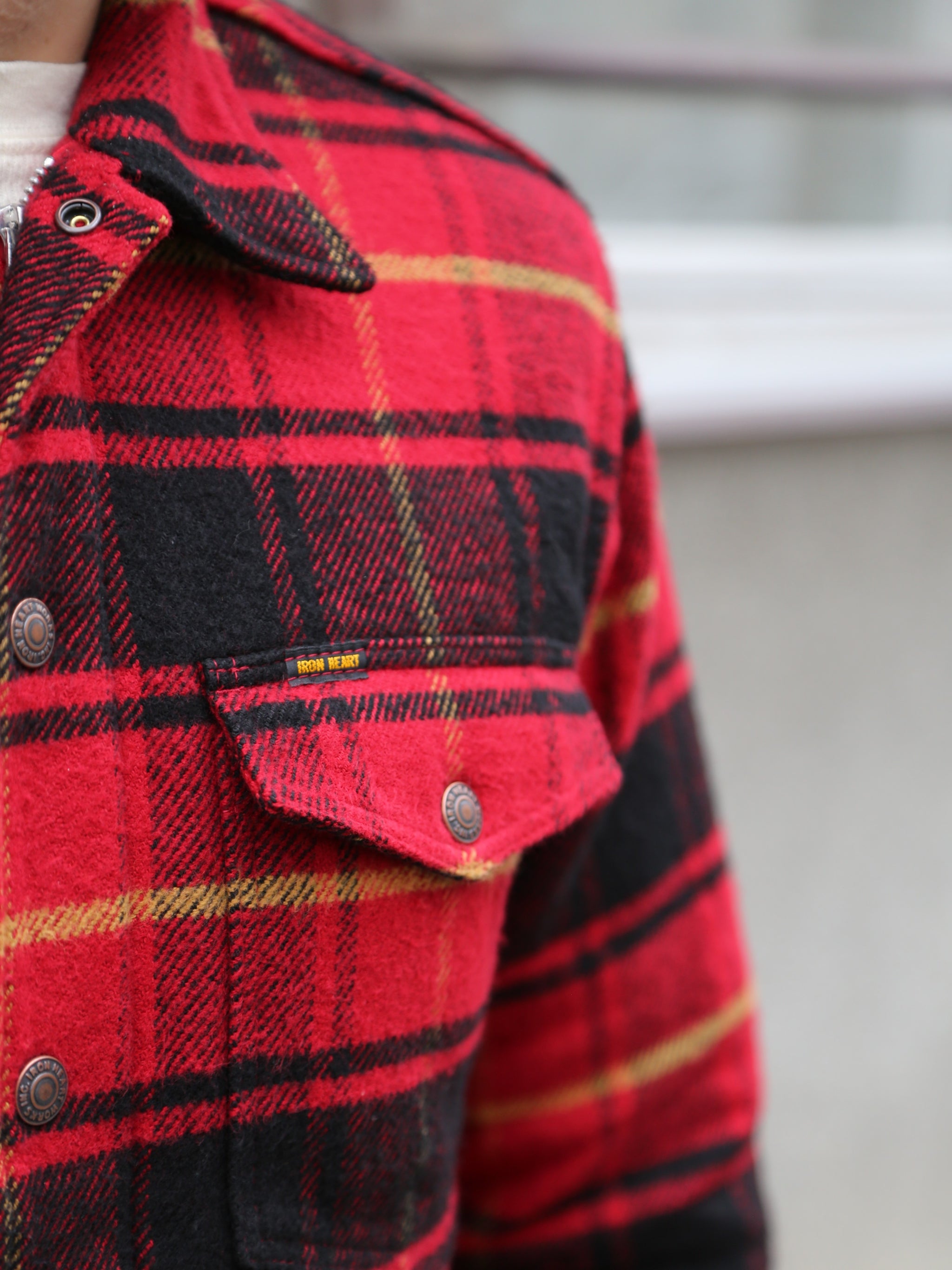 Rugged, warm, and windproof. This heavyweight flannel shirt is a staple of every Iron Heart fall/winter collection. This season, they’re introducing the new “Rider’s” cut, designed with heavy-duty hardware and a roomier, boxy fit for heavy layering. Built for the open road, features include a two-way zipper beneath a snap-fastened over-placket for enhanced wind resistance, large secure chest pockets, and heavy-duty copper snaps throughout—offering motorcyclists the warmth and comfort of a flannel, with the functionality of a jacket.