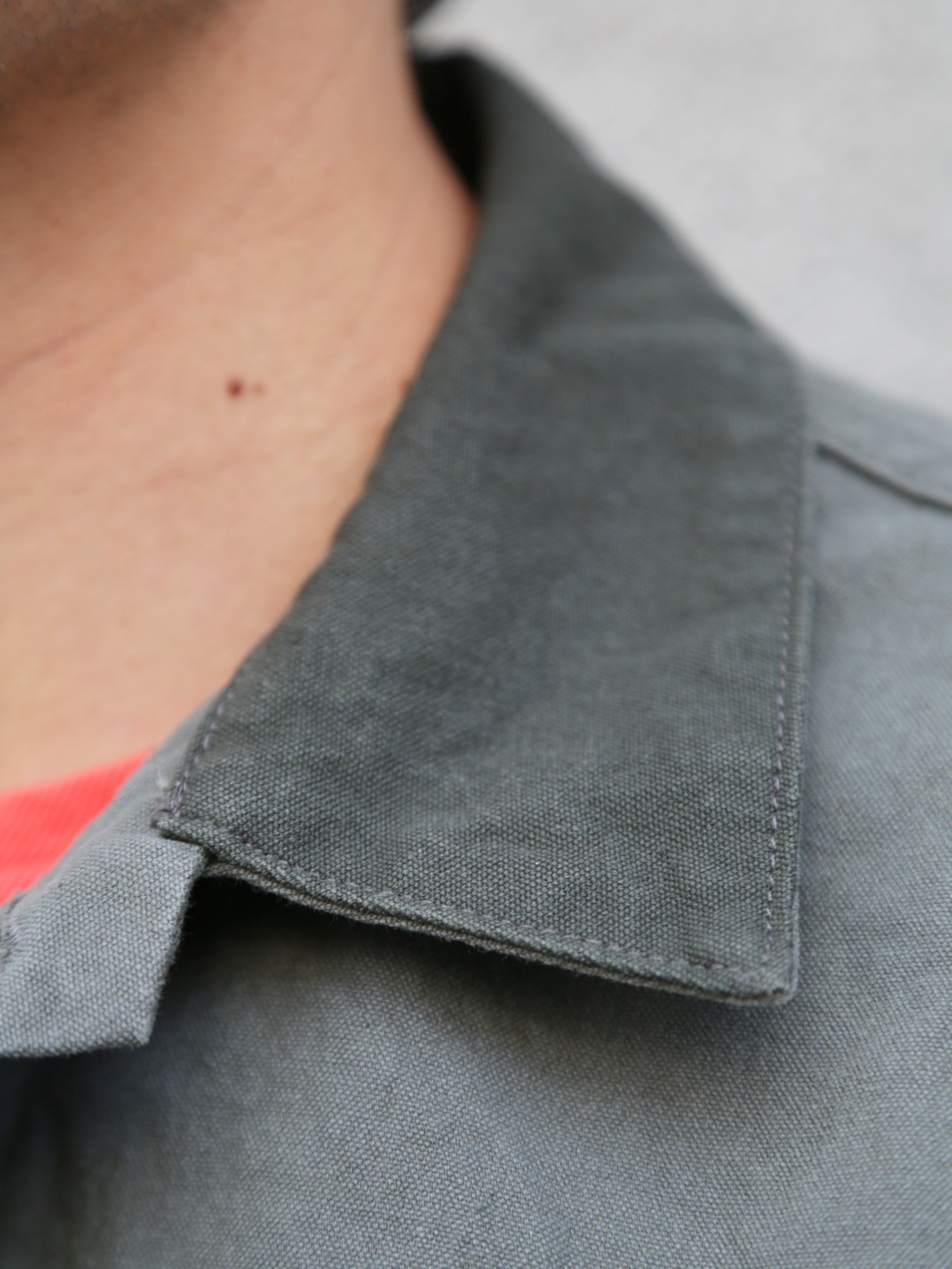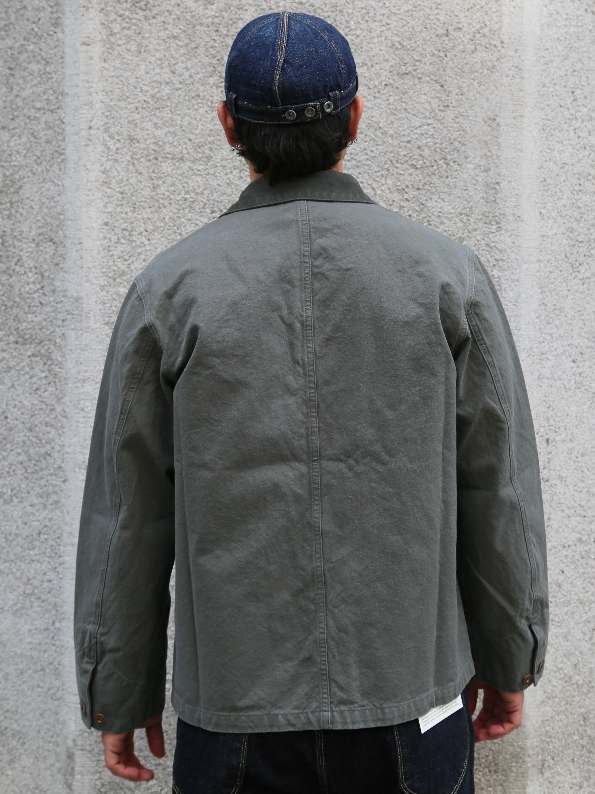 The Howie jacket features a generous fit, staying true to the essence of a classic work jacket. Crafted from our "Duck Canvas," a pale fir-green 2-ply canvas weave, this jacket is detailed with tonal stitching and copper "Donut" buttons. The result is a thoughtful piece, blending mid-20th-century vintage hunting gear inspiration with a workwear aesthetic.