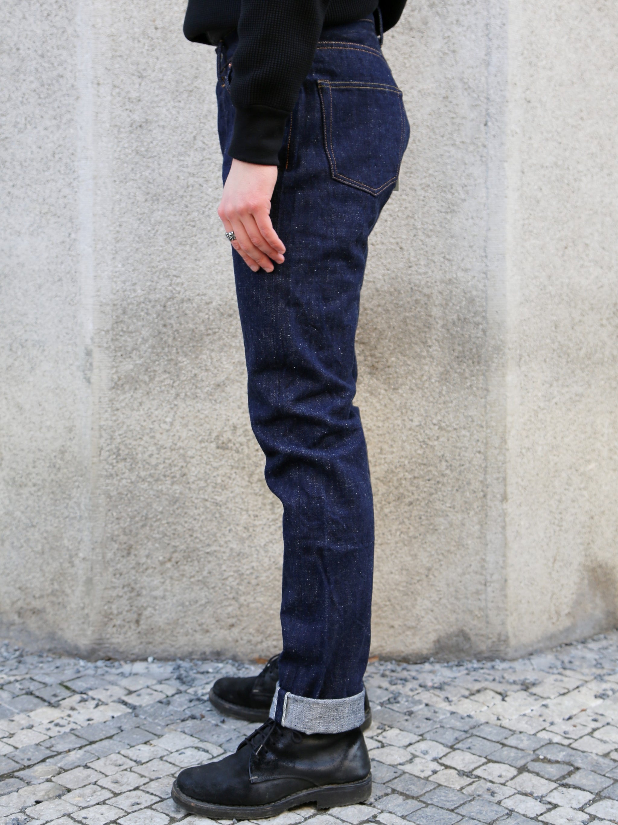 • 18oz unsanforized pure indigo and natural indigo Japanese selvedge "Benkeii" denim. It is a one-wash version so expect no shrinkage