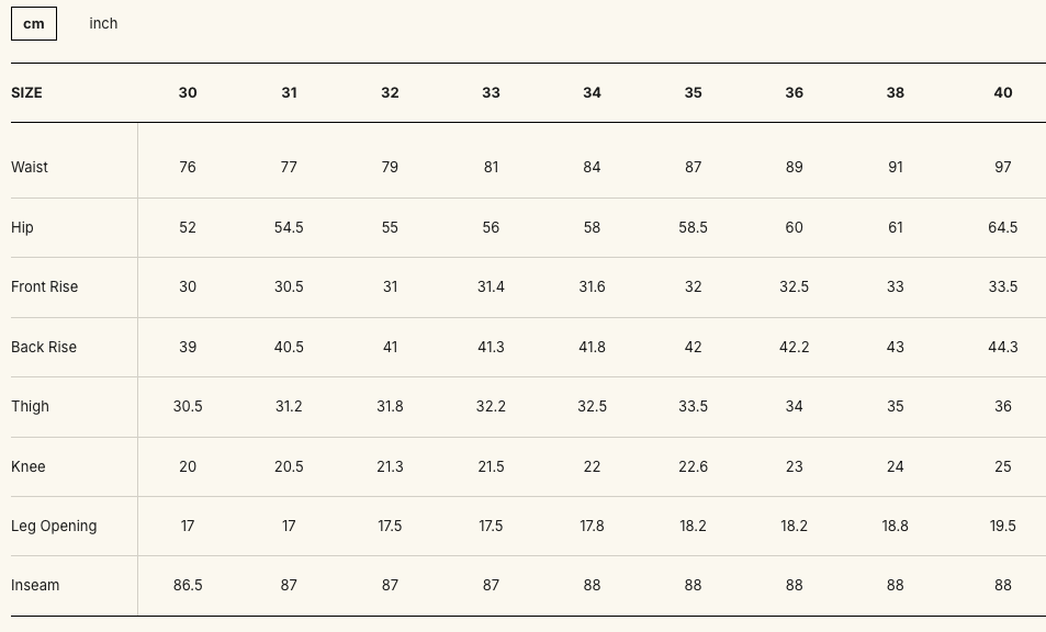 The cut is the S211AX, a relaxed tapered fit available only outside Japan with this fabric. The aggressive taper provides a slim-fitting silhouette while allowing ample space at the thighs, with a mid-high rise. As many other Samurai Jeans, the S211AX runs slightly small in the one wash version. In general, we recommend choosing one size larger than your usual. However, as always, we recommend checking the size chart first to find your perfect size. It is unsanforized but one washed, so there will be no shrinkage.