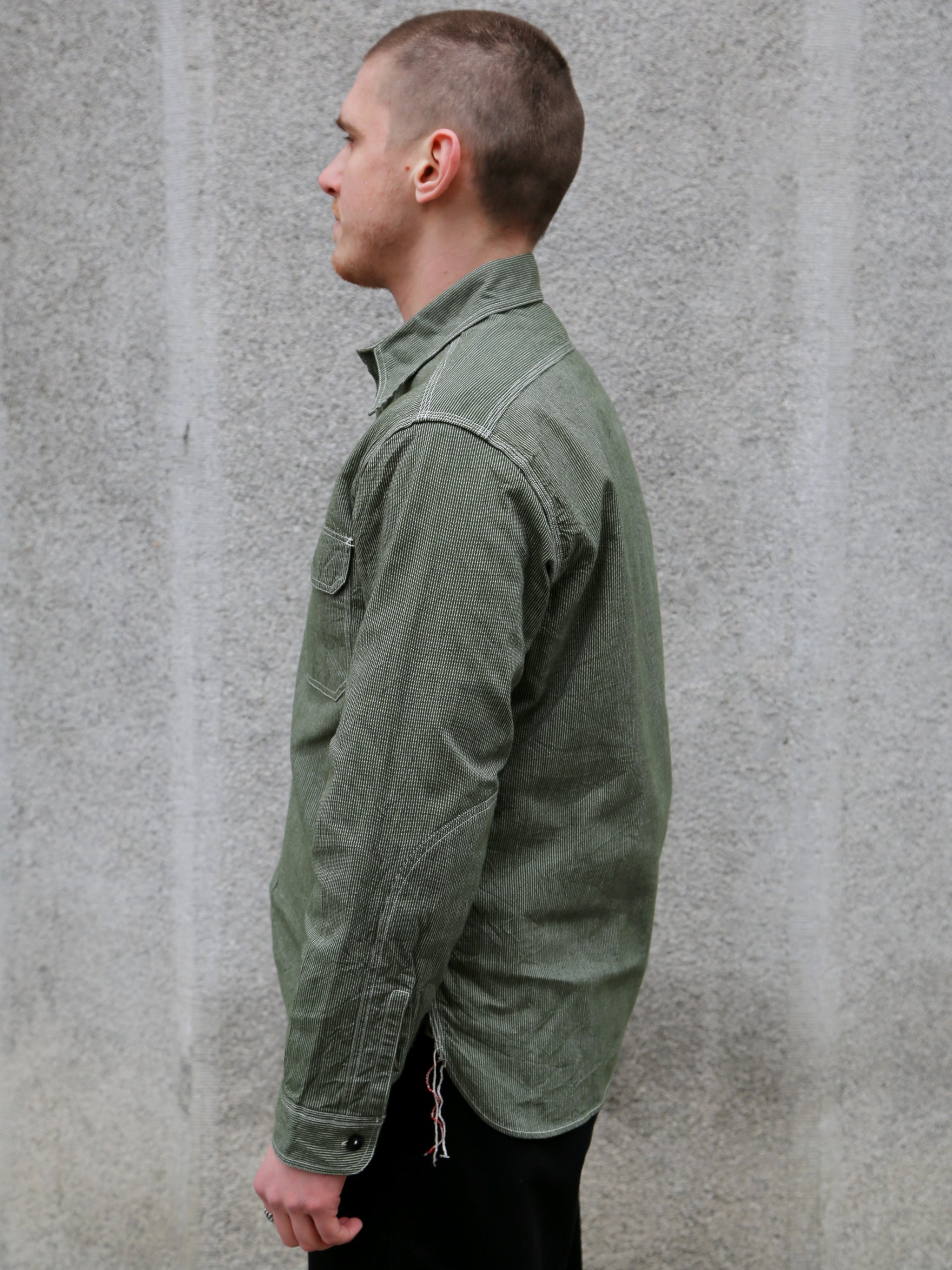 • Sugar Cane Jean Cord Long Sleeve Work Shirt – Green (SC2551)