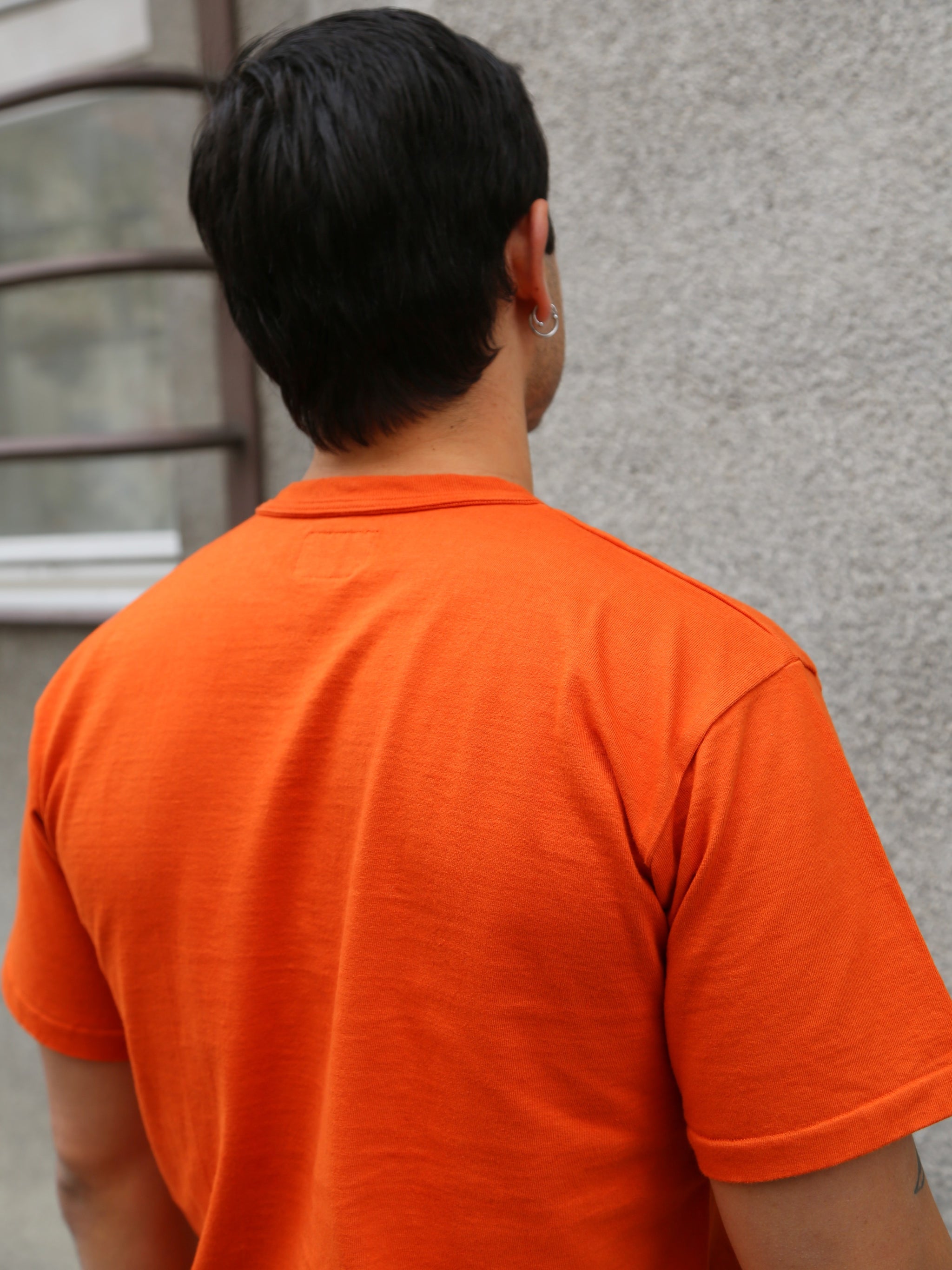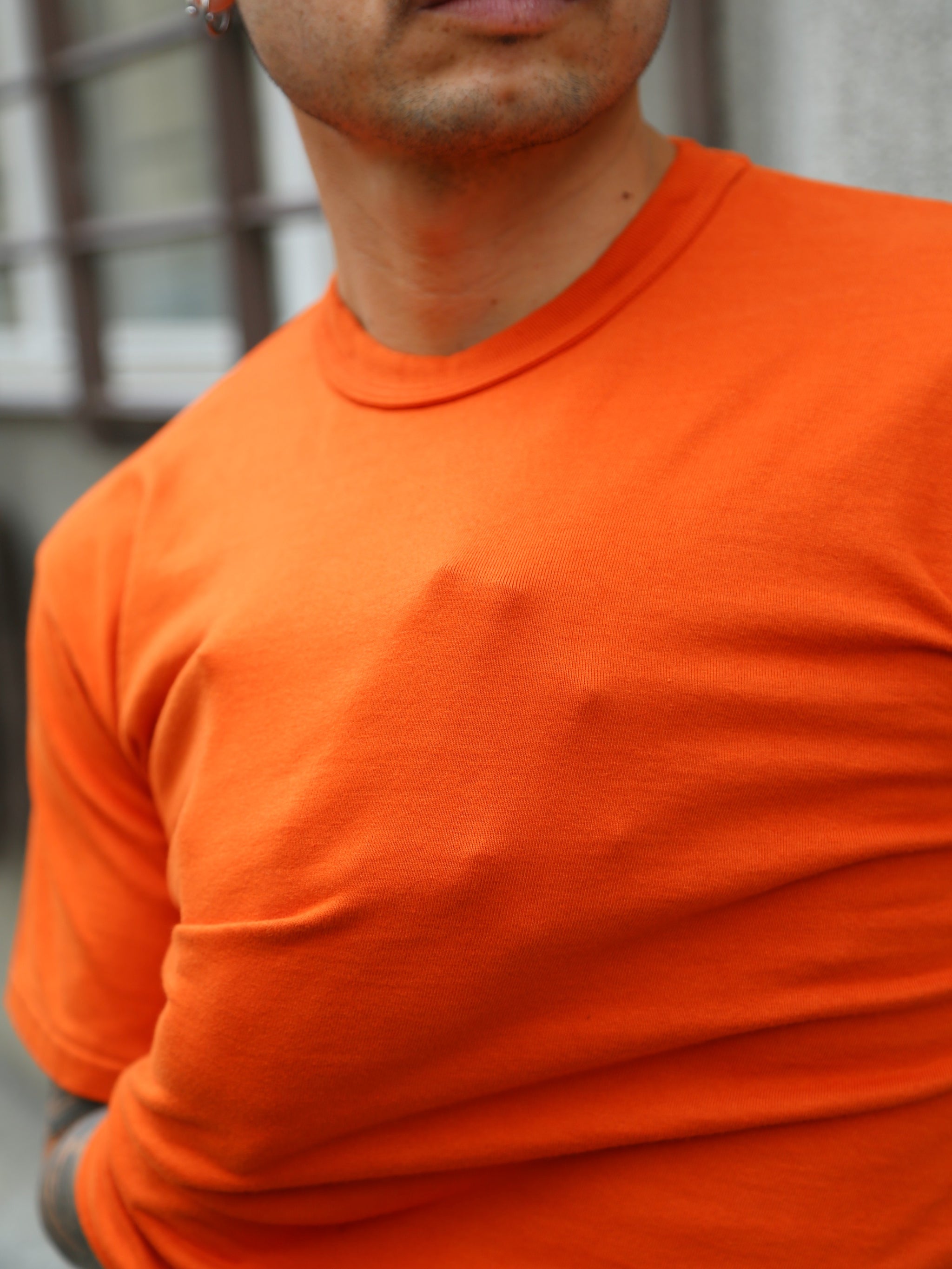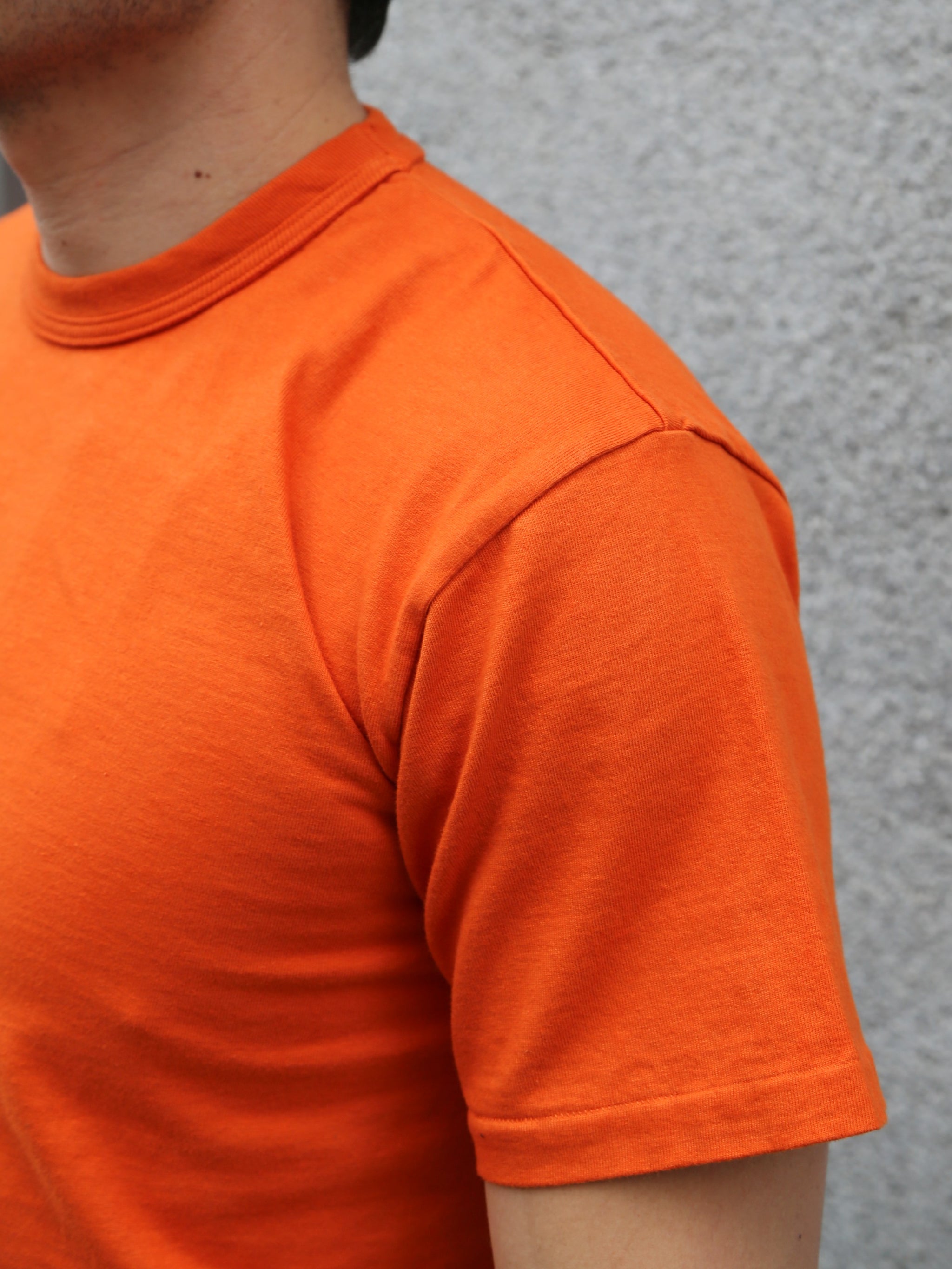 The style is produced on an antique loopwheel knitting machine in Japan (one of 2 left in the world!) and this allows for the tee to have no side seam, whilst the slow knitting process produces no stress on the yarn so it will almost never go out of shape.