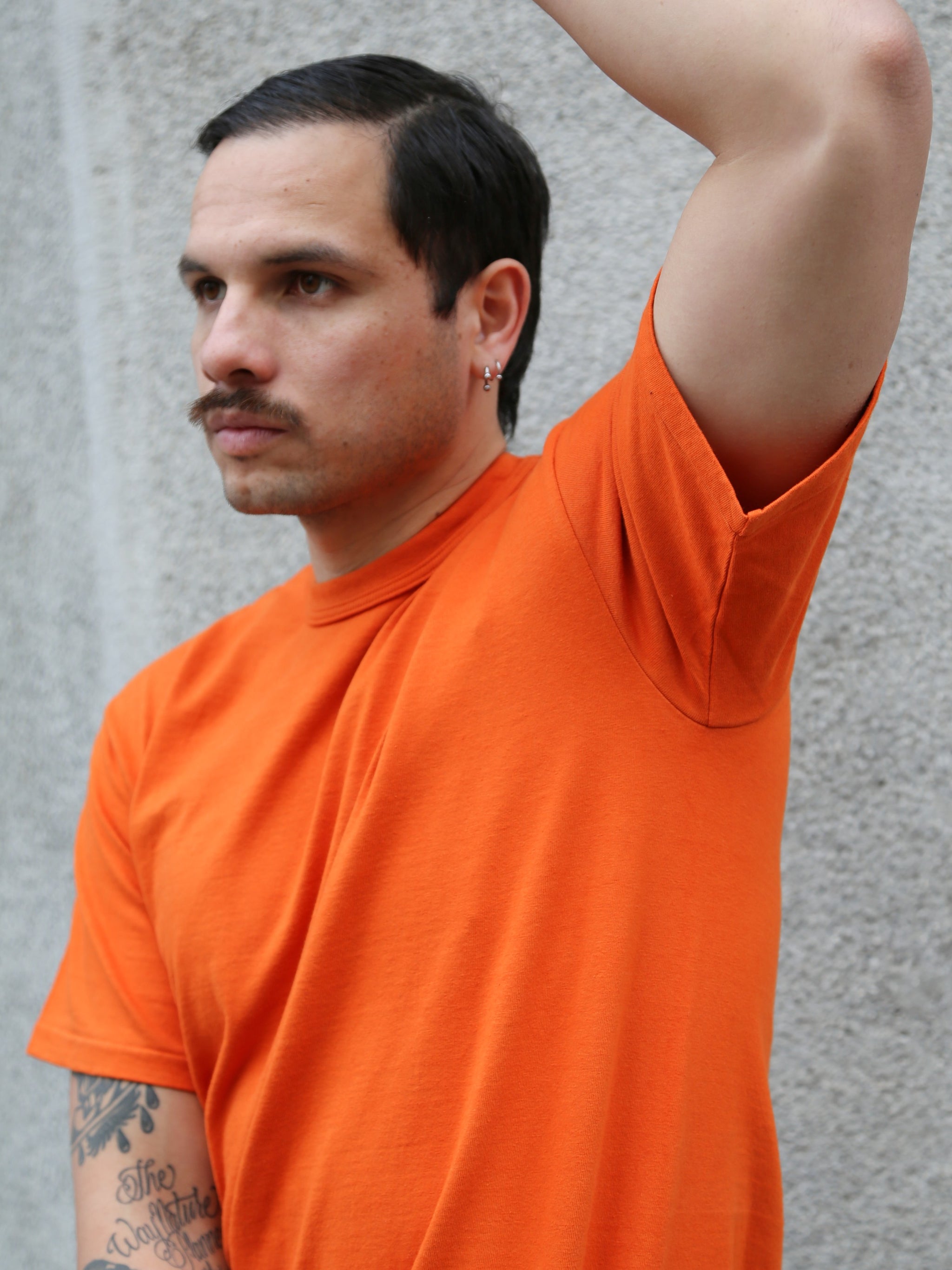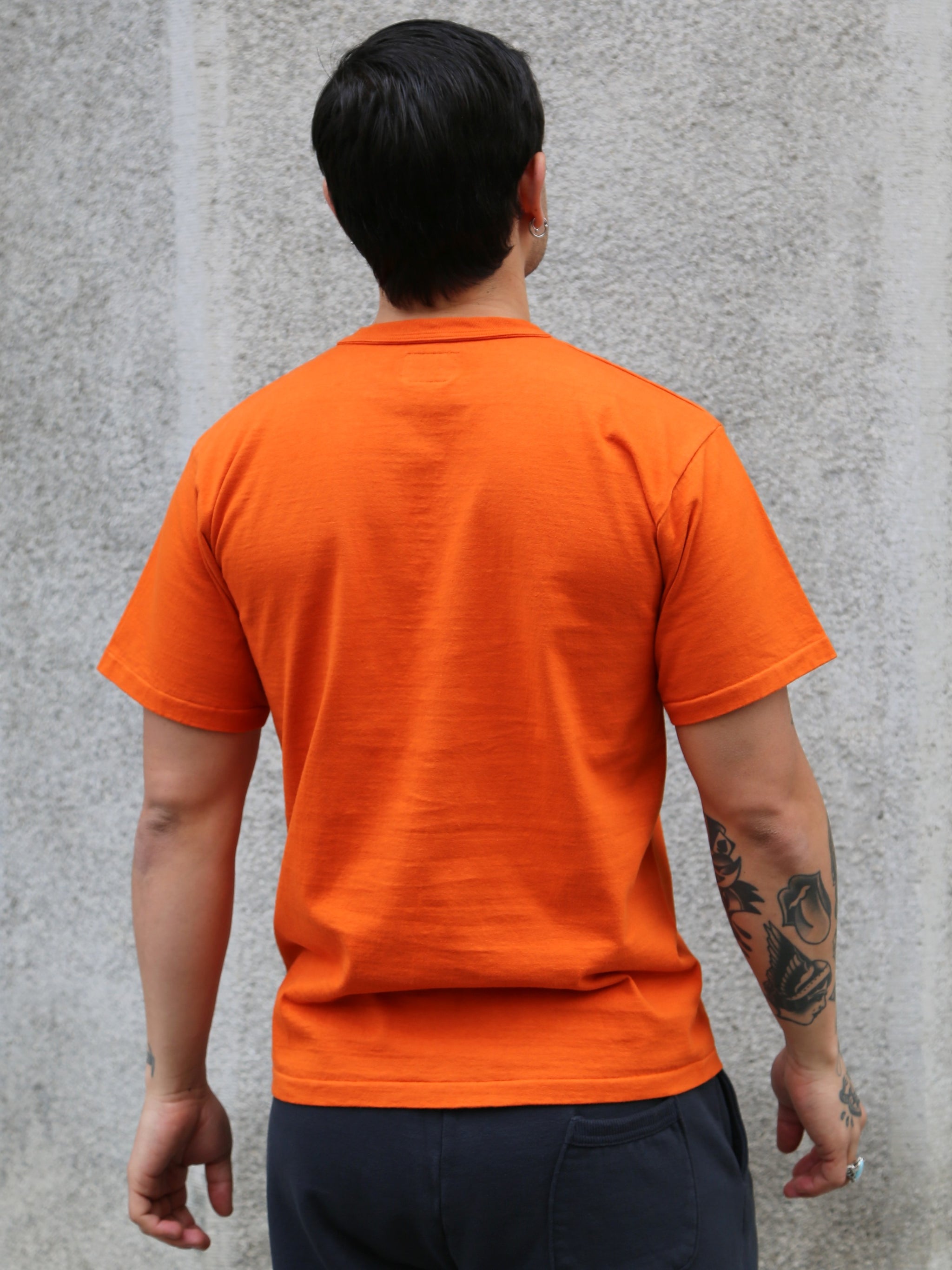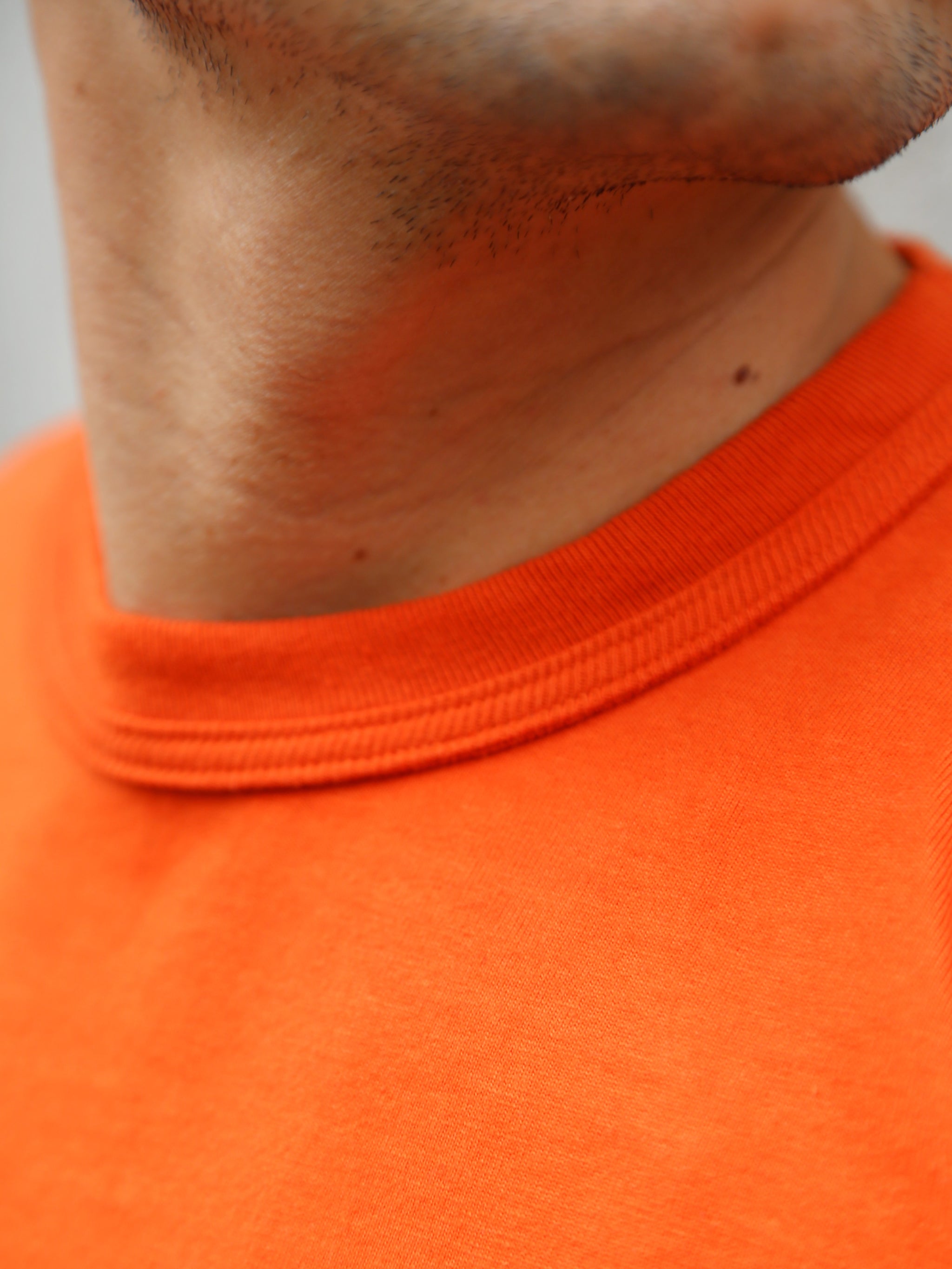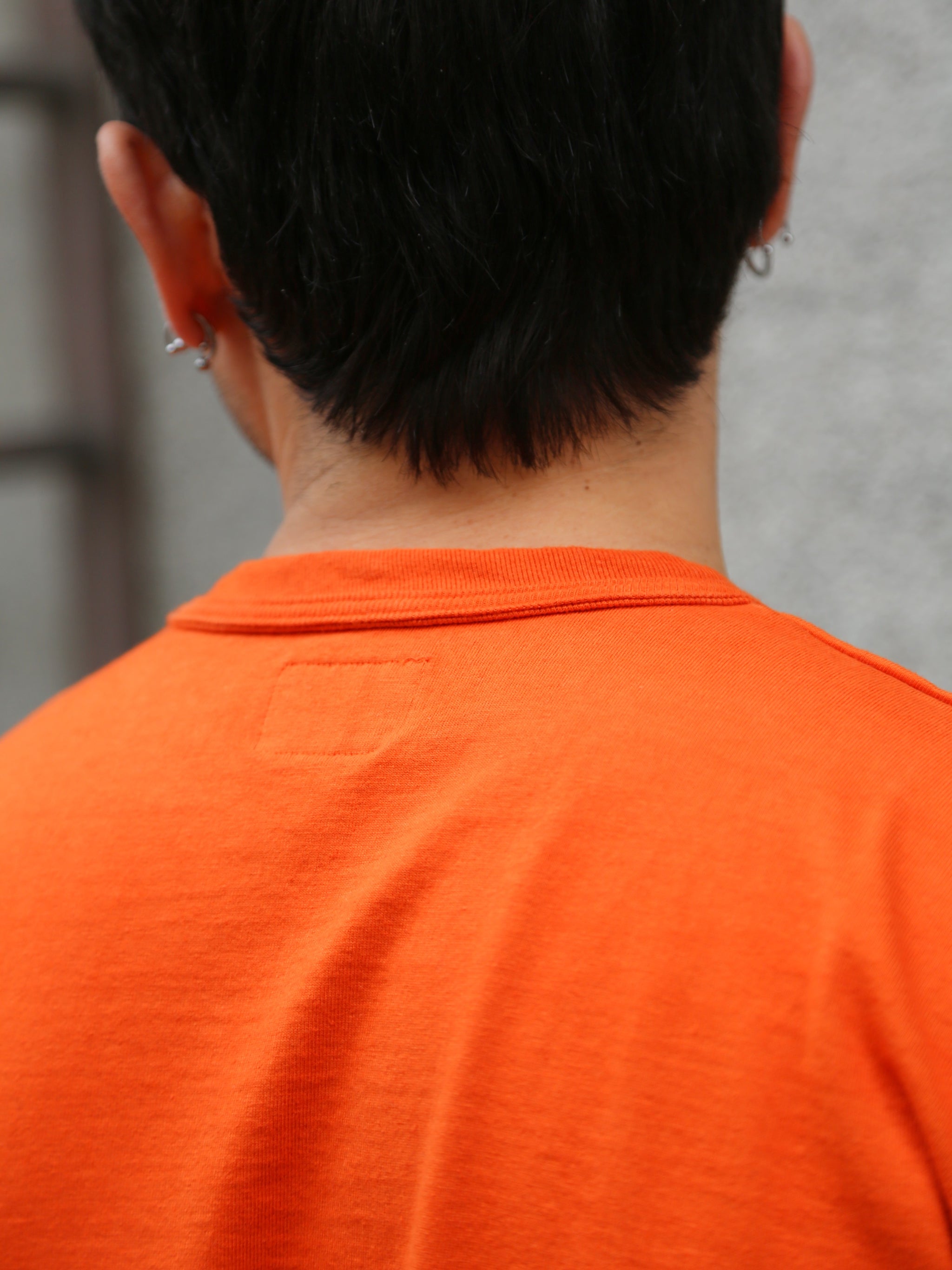 The style is produced on an antique loopwheel knitting machine in Japan (one of 2 left in the world!) and this allows for the tee to have no side seam, whilst the slow knitting process produces no stress on the yarn so it will almost never go out of shape.