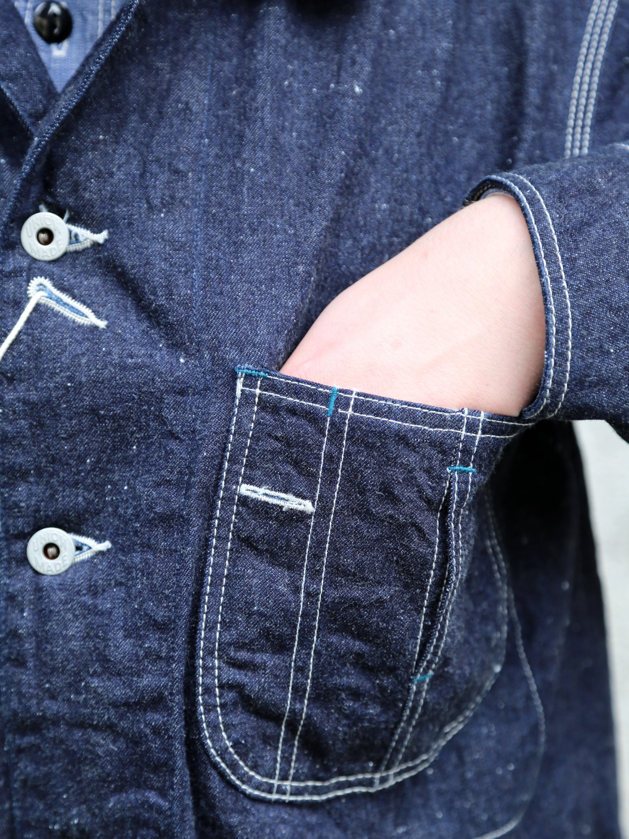 While faithfully maintaining the details and silhouette, Omoto have achieved modern convenience and comfort by adjusting the balance of the collar, improving the range of motion around the shoulders, and adding an inner pocket.